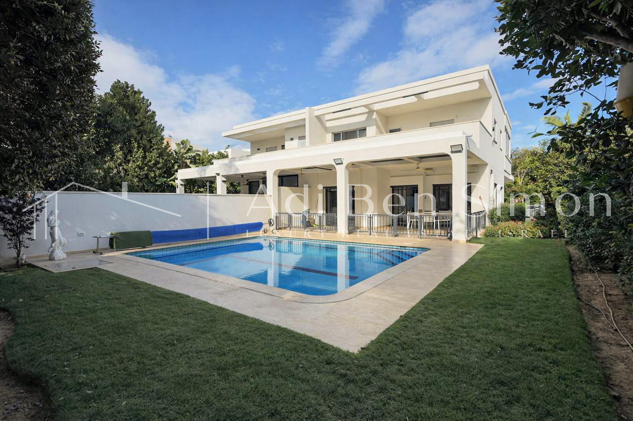 בריכת מלח גדולה גינה מטופחת וירוקה